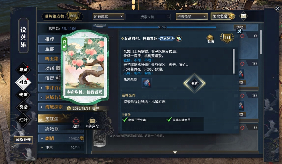 各位同门完成【吾谁与归】任务后,可通过探索【天兵奉命】【小猴立志】【小猴报仇】三幕剧,解锁对应彩蛋成就卡,并获得同名称号!大编剧就是需要响亮的称号!
